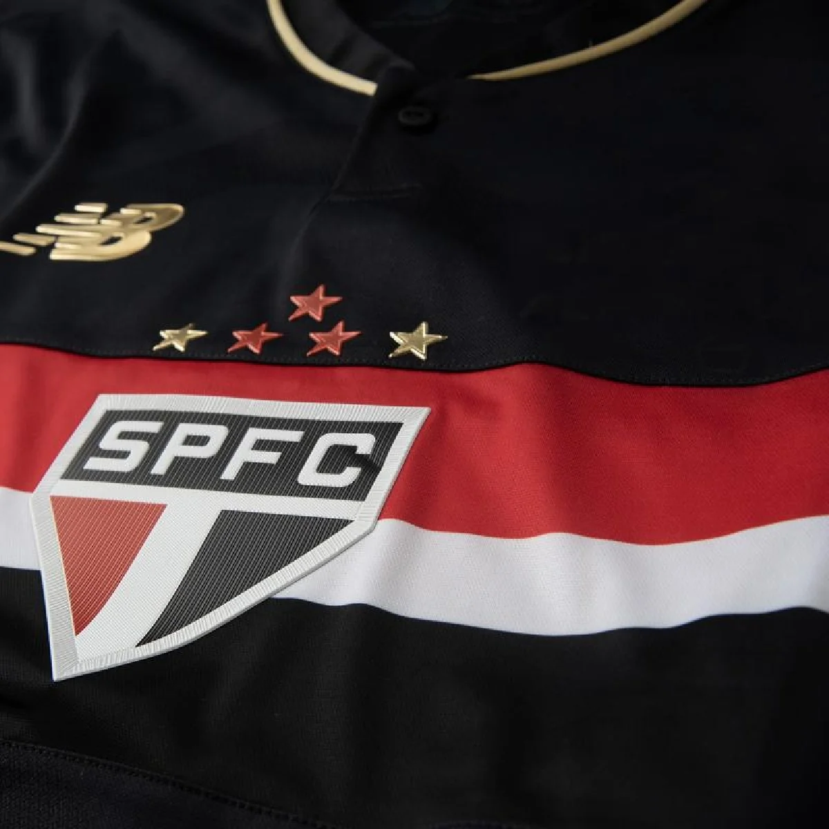 A camisa preta retrô São Paulo FC | New Balance é uma das mais bonitas lançadas pela marca em conjunto com o Tricolor desde o início do fornecimento de material esportivo.